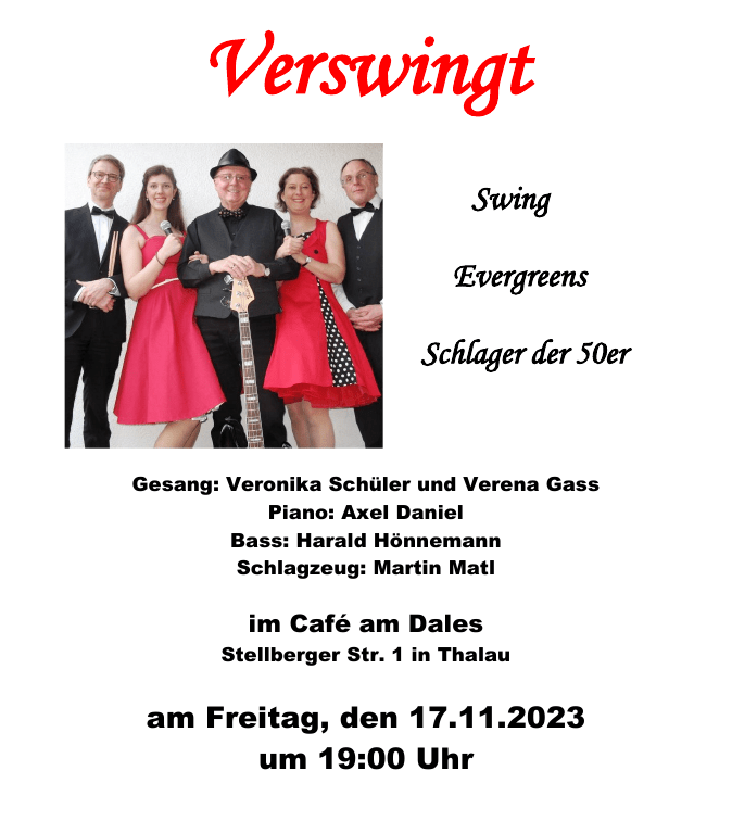 Wir freuen uns “Verswingt” wieder im Café am Dales begrüßen zu können.